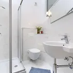الحمام مزود بحوض استحمام والبيديت والدوش.